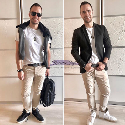 «Всегда думал, что разбор гардероба - сугубо женская забота. Однако я был приятно удивлен тем, что умело комбинируя мои собственные вещи, на мне же получается совсем другой образ. Кристина, помимо подбора вещей из